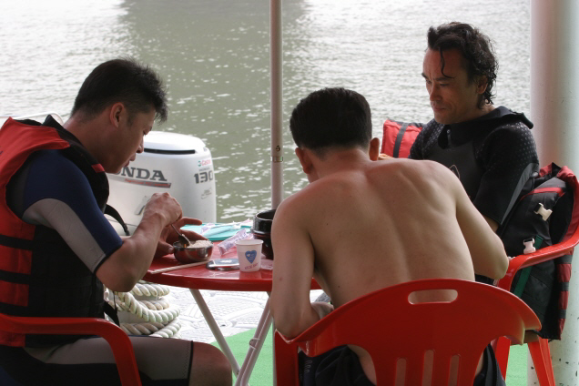 선상에서 식사중...